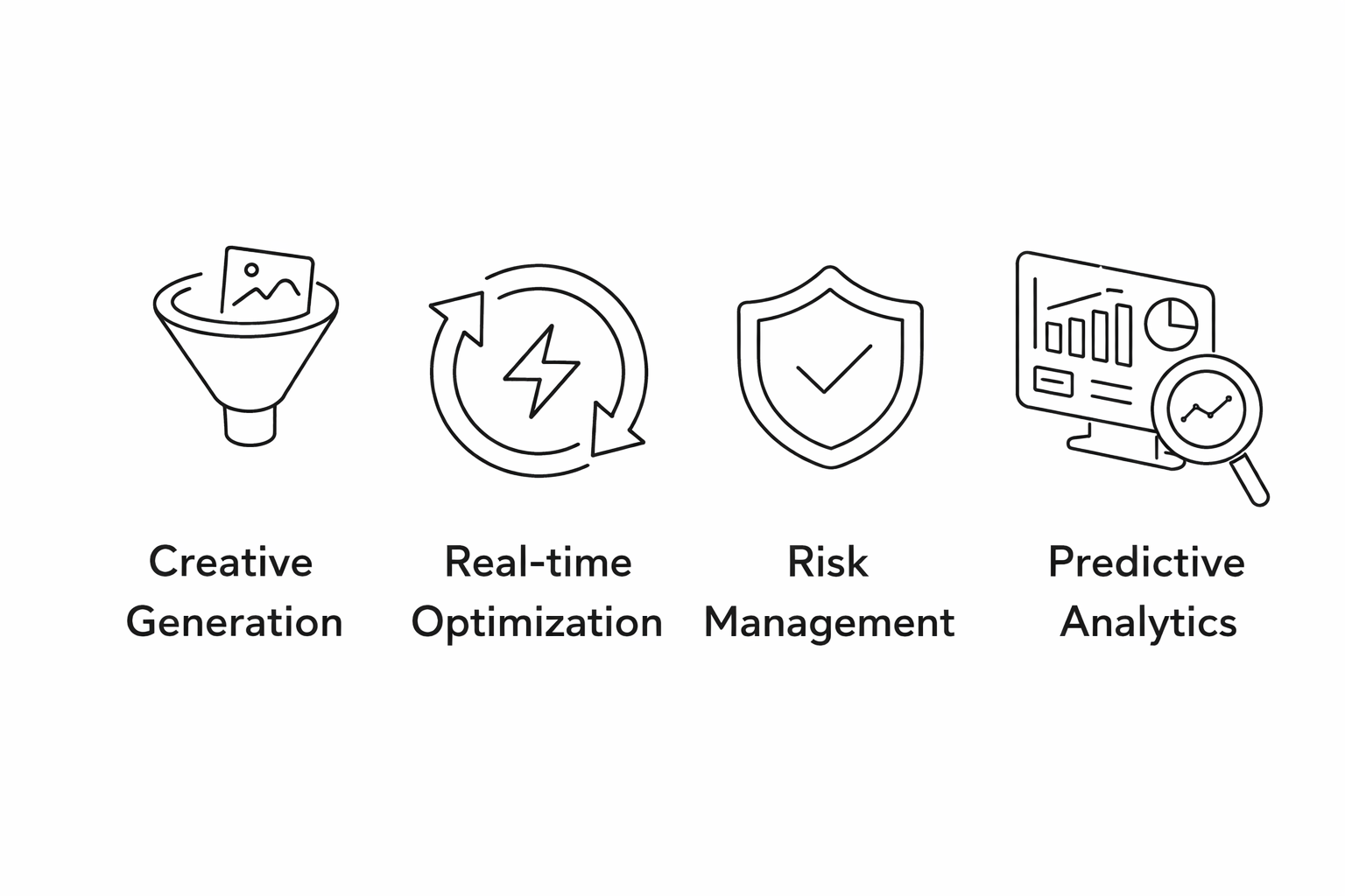 Fully automated media buying with AI agents for creatives, campaign scale, attribution, prediction, and optimization.